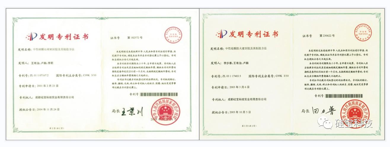 La empresa posee actualmente 286 patentes, incluyendo 4 patentes de invención estadounidenses y japonesas, lo que representa más del 70% del total de patentes de invención. Obtuvo el máximo galardón en materia de propiedad intelectual en China: el Premio de Patentes de China. Al mismo tiempo, la empresa también concede gran importancia a la gestión y aplicación de patentes y otros derechos de propiedad intelectual, y participa activamente en la transformación del mercado. Fue pionera en el sector en solicitar patentes de alta calidad para selladores de silicona ignífugos, adhesivos de silicona neutra para piedra y otras patentes, y la primera en obtener la autorización correspondiente, generando considerables beneficios sociales y económicos.